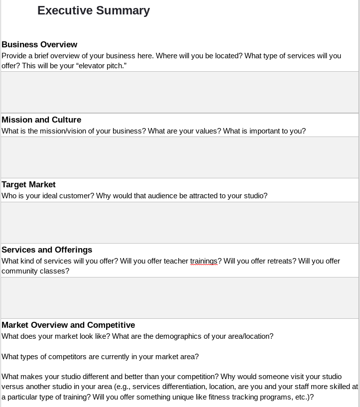 Best for: Yoga professionals who want a free, straightforward business plan template template.