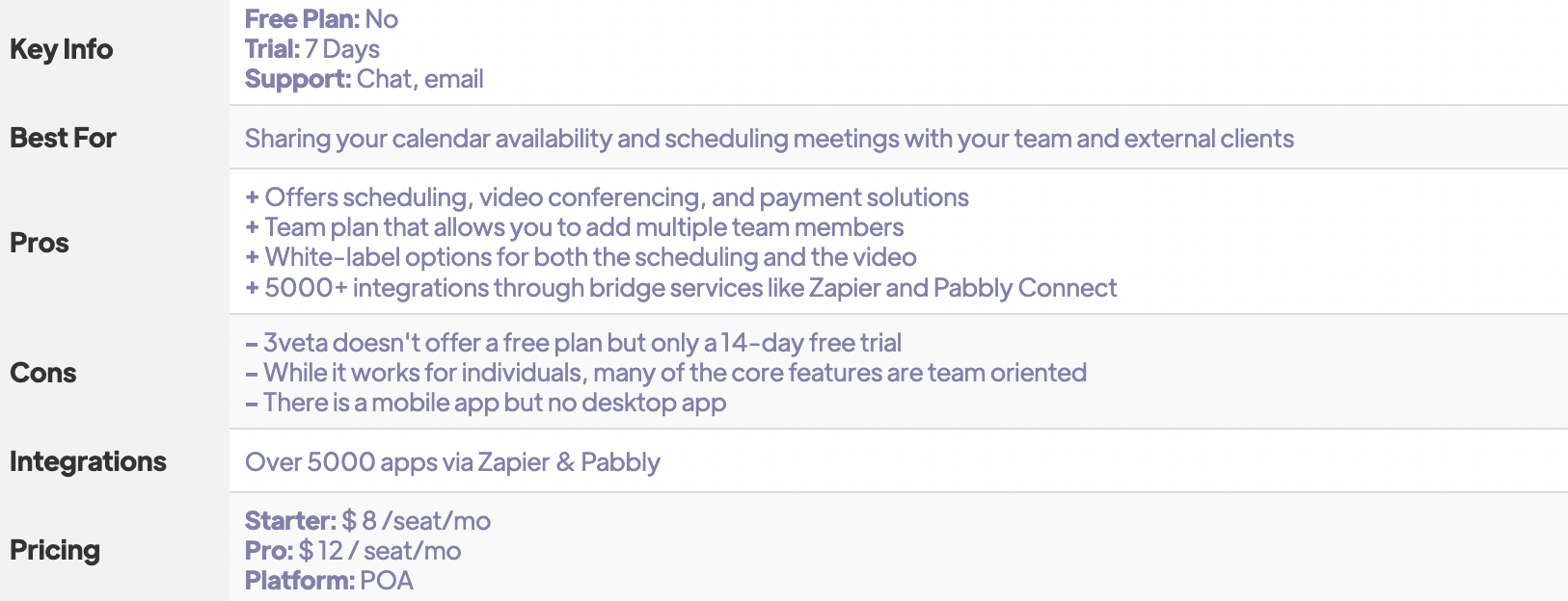 3veta is an all-in-one tool designed for remote teams. Although a relatively new company, they've quickly establishing themselves as an industry leader in video meetings. Small and medium businesses use 3veta to schedule meetings with their team and external clients. With 3veta, they can easily share their calendar availability and find the most appropriate time for online meetings.