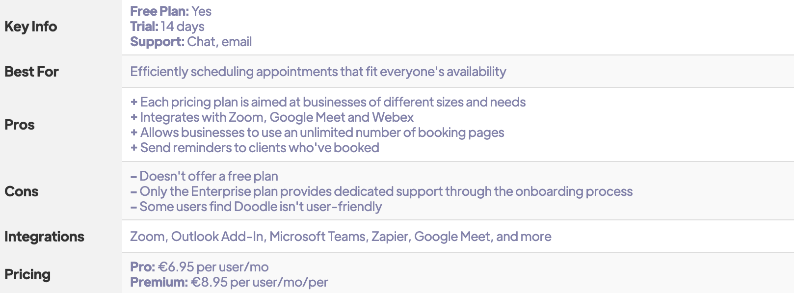 Doodle is an online scheduling system which makes arranging group and one-to-one meetings and appointments easy. With this scheduling system, businesses can quickly understand when all attendee's availability and schedule an appointment that fits everyone's timetable.