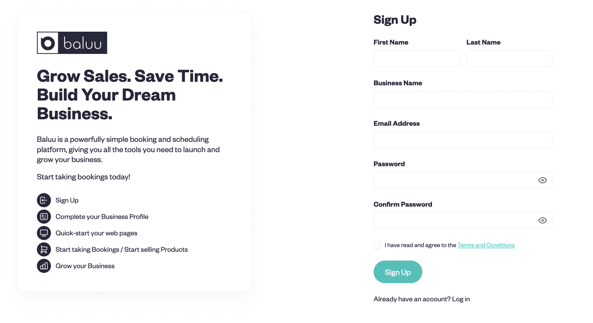 First things first, you’ll need to sign up to Baluu. Baluu gives you access to all features with no booking limits — for free. It’s the perfect way to explore the platform and start managing your classes, events, or appointments without restrictions.