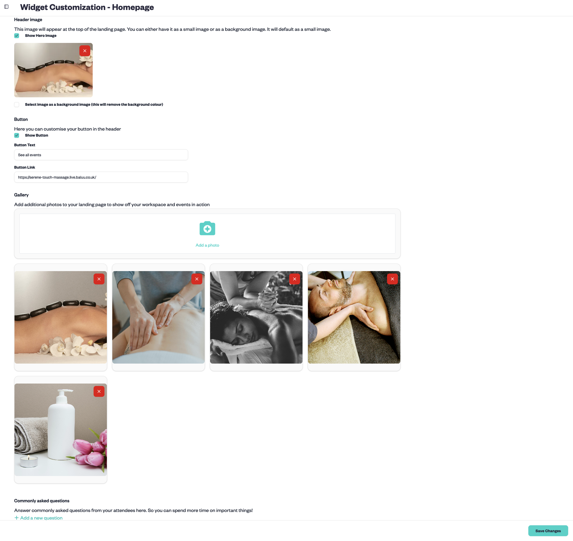 Additionally, on your homepage, you can add images to your gallery to showcase the events and services you offer, and include answers to frequently asked questions.