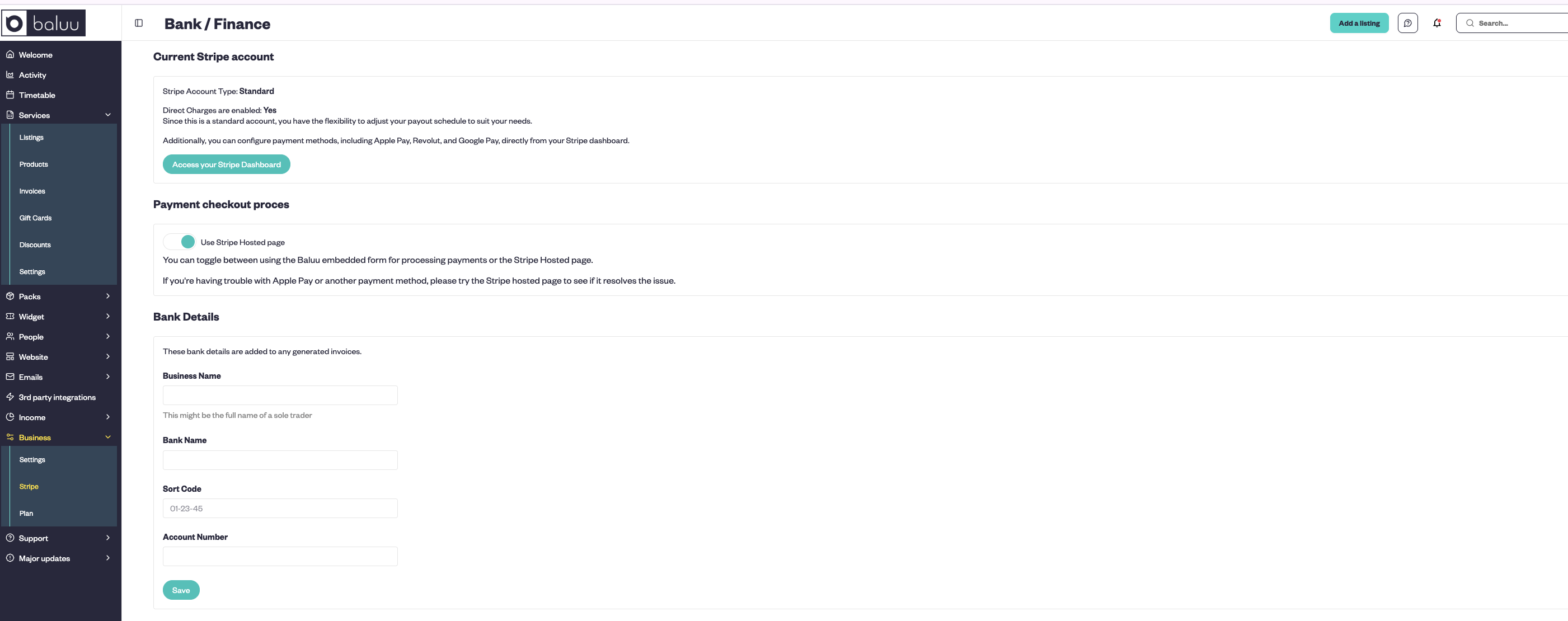 Now, all that’s left to do now is to link your bank details or Stripe in the Finance section and you’re all set!