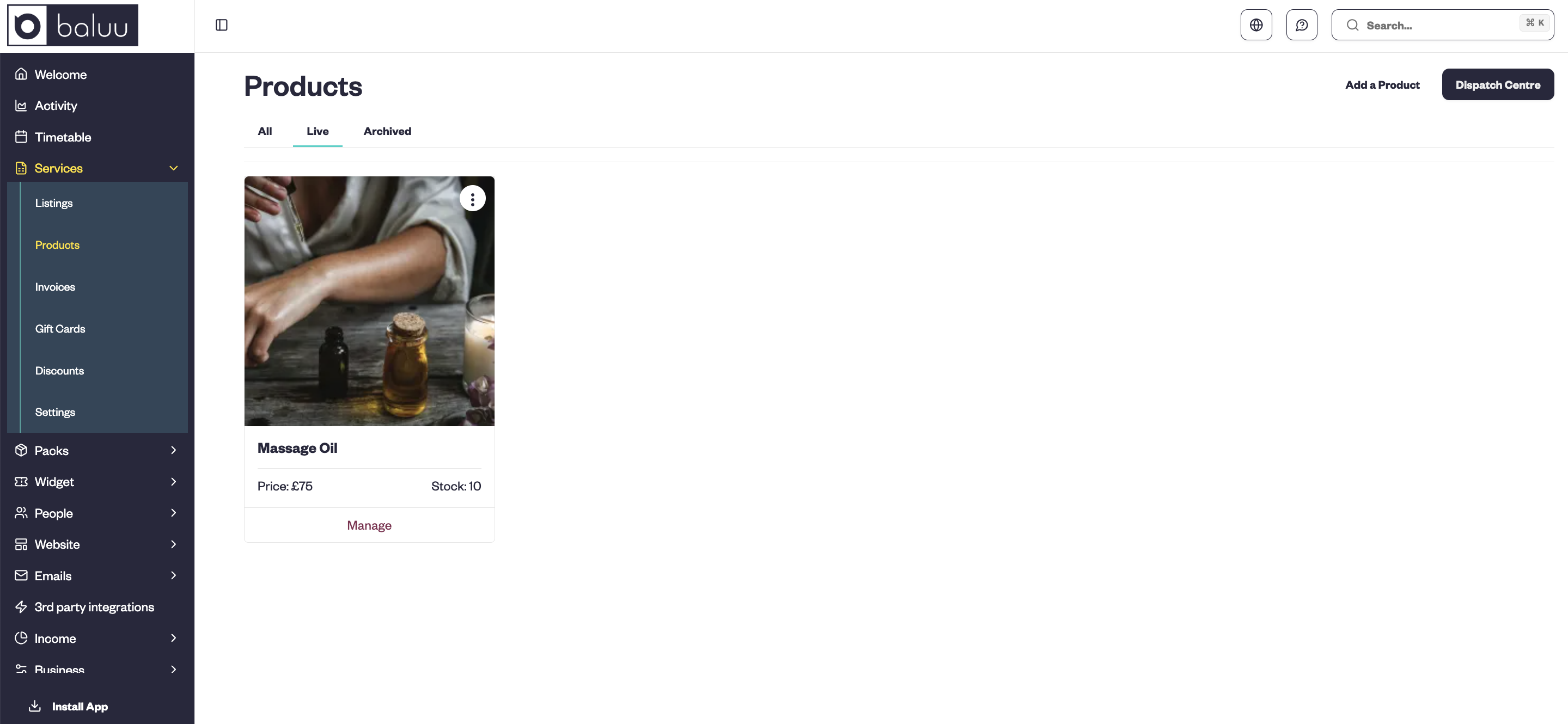 Baluu gives you all the tools you need to run your bookings business — simply and effectively. From your dashboard, you can track customers, income, VAT, reviews, and more. You can offer discounts and gift cards, manage sessions, set your own cancellation policy, and view all automated messages sent to customers via the Dispatch Centre — including booking confirmations and reminder emails, which are sent automatically to reduce no-shows and keep clients informed.