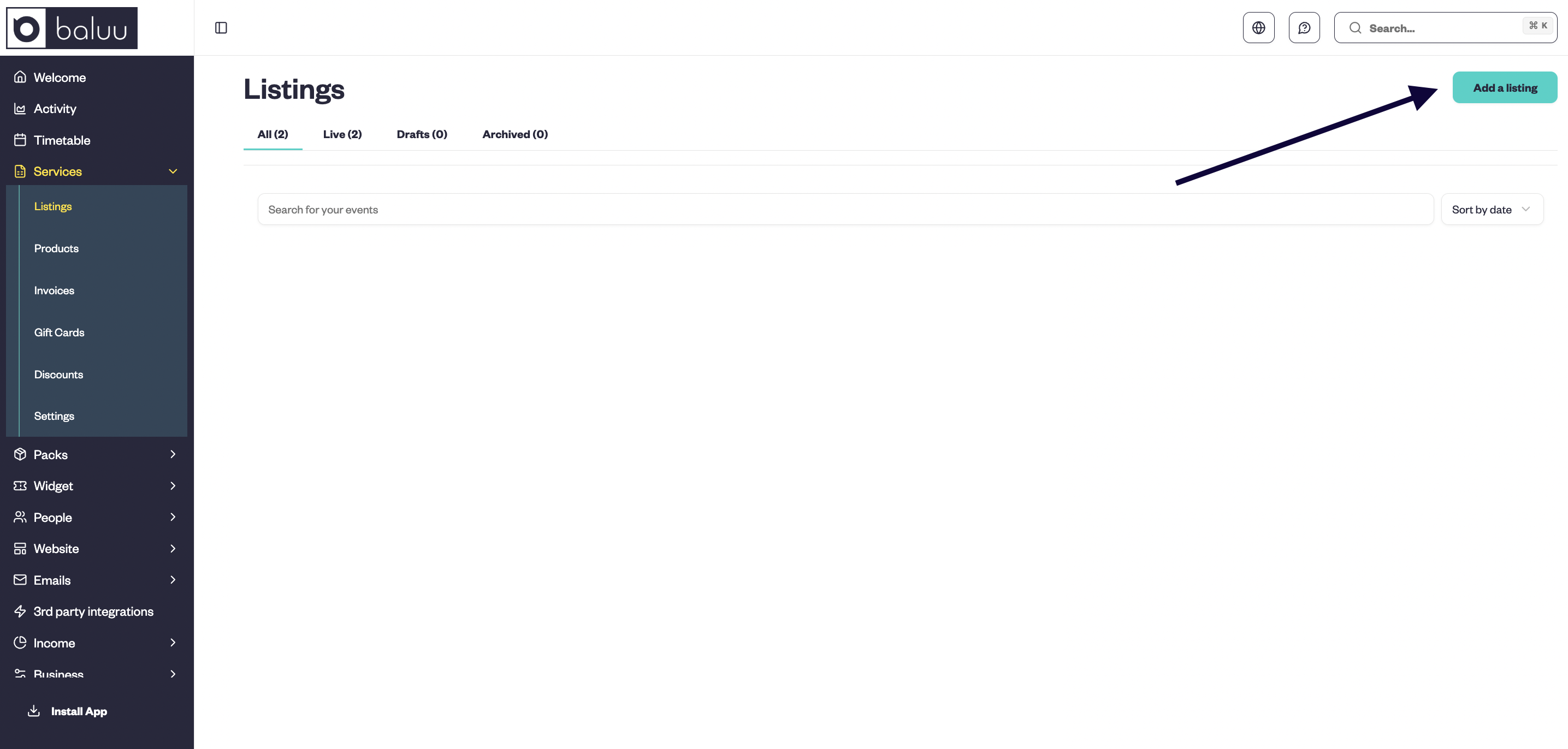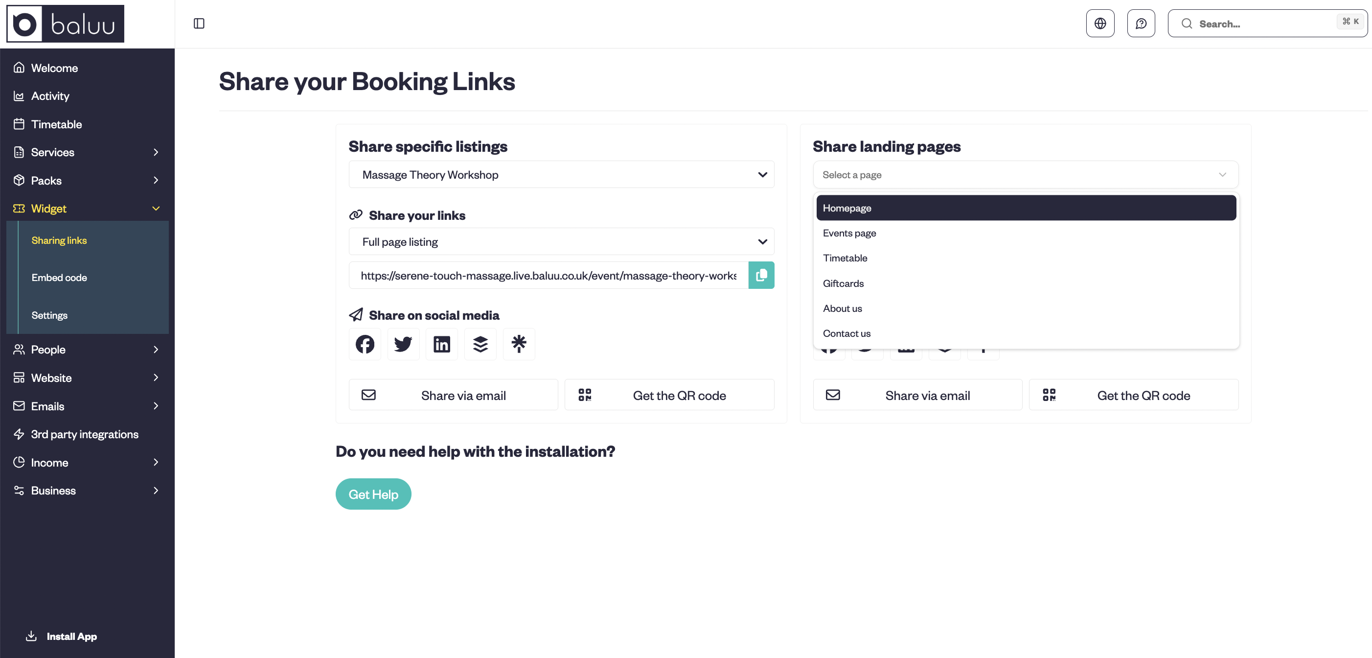 With Baluu, you can share your Events Page, Timetable, a specific Listing, or a dedicated Landing Page. This lets customers go directly to the right page, choose a class or event, and book with you.