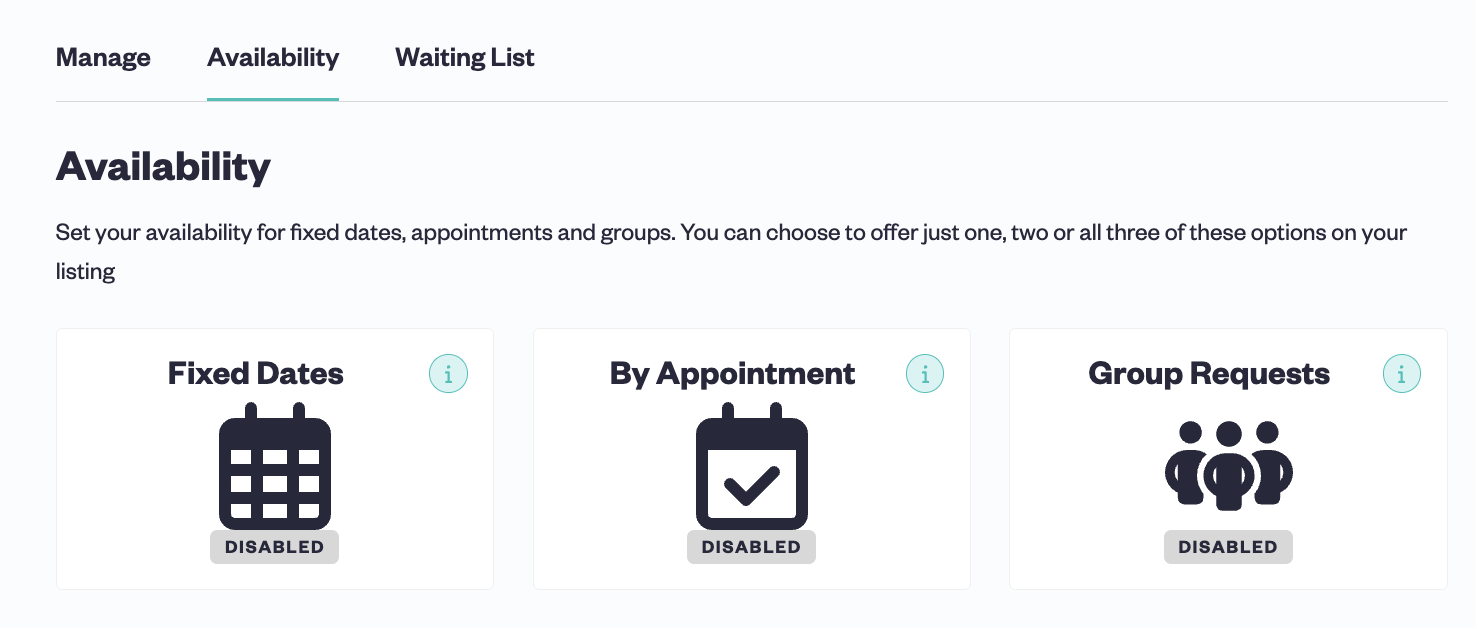Before you publish your event, make sure to add a few essential details. In the Availability section, you’ll need to set the dates and times your event or service is available to book.